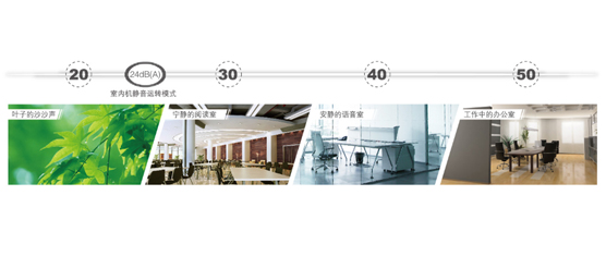风道经过CFD优化设计,配以整体隔音材料、优质电机,运转平稳、气流平滑,最低噪音仅24分贝。